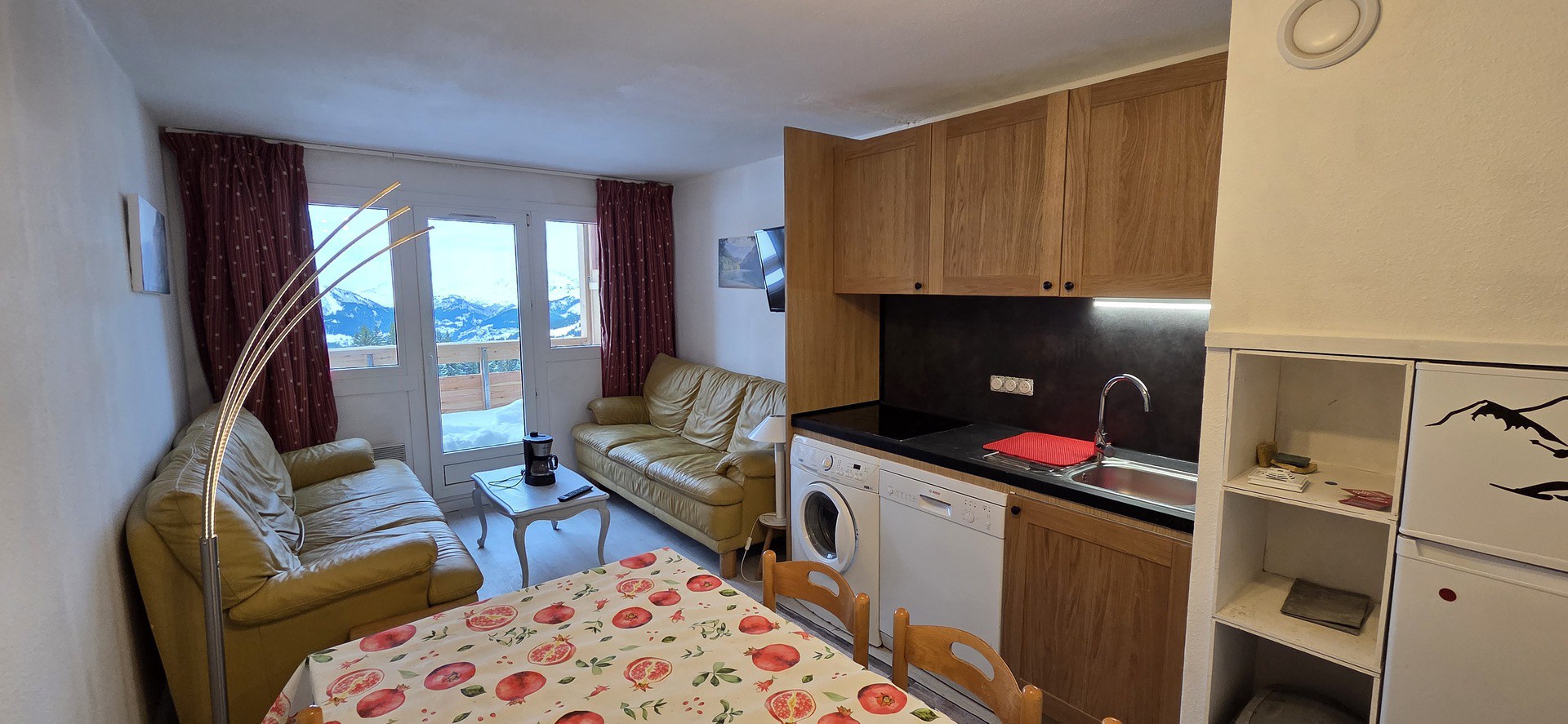 Appartement trés lumineux agencé pour 4 personnes, en duplex Résidence du Malinka, au 3ème étage Situé dans le quartier animé de la Falaise superbe vue sur toute la station. D'une superficie de 40 M², il se compose : Au premier niveau : Séjour : avec le coin repas, le salon, une télévision et l'accès au balcon exposé sud Cuisine : avec réfrigérateur, plaques électriques, four, lave vaisselle, lave-linge et micro-onde Cafetière à filtre et cafetière capsule KRUPS, bouilloire. Salle de bain : avec baignoire et sèche-serviettes Cabinet de toilette Au niveau +1 : Chambre : avec un lit double 160 cm- Couettes Chambre 2 : avec un lit superposé de 2 personnes - Couettes Salle de douche : douche et WC Divers : Ménage de fin de séjour inclus - Sol parquet et moquette Résidence avec ascenseur Chauffage électrique : sol + convecteur Casier à skis - Départ de la résidence skis aux pieds Appartement équipé d'Internet wifi ou filaire, bas réseau de la station, Nous nous déchargeons de toute responsabilité, en cas de défaillance, coupure ou panne du réseau télévisé et réseau Internet indépendant de l’agence.